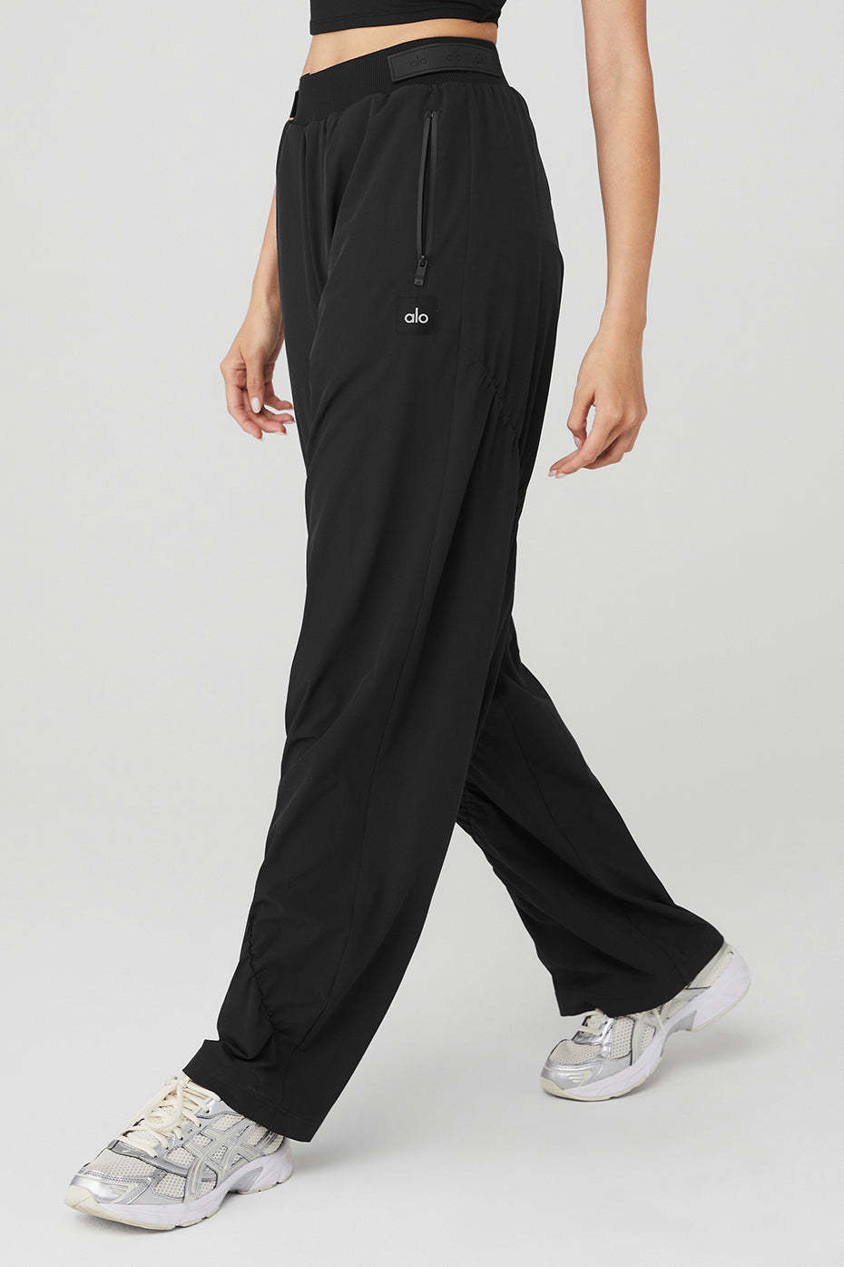 Upgrade with the High-Waist Elevation Trouser. It strikes the perfect balance of chill yet elevated, with a high-waist fit, wraparound ruching details, and side zip pockets for storing small essentials on-the-go. Wear it solo or link up with Cropped Elevation Coverup.
