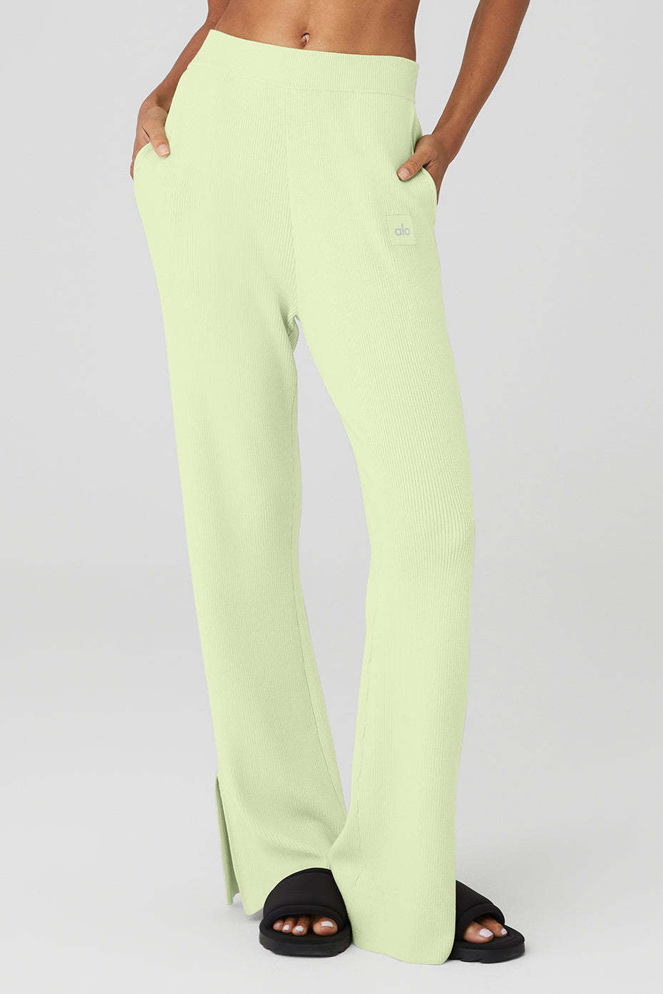 Long-awaited and already setting trends. The Knit High-Waist Salana Wide Leg Pant steps streetwear up a notch with a forward wide leg silhouette, deep side slits, a lightweight ribbed knit, and invisible side pockets for hands-free city strolls. Pair with the Knit Salana Tank or the Knit Salana Cardigan for the ultimate set.