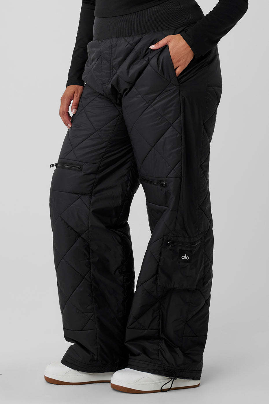 - True to size〞quilted, lightly filled pants designed with a wide-leg fit and longer inseam