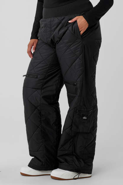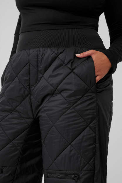 Lightly filled with a quilted finish, the Snowriders are a sleeker take on the puffer pants trend. They have a wide ribbed waistband, plenty of pockets (6 with zippers, 2 side-slit style), and bungee hems that transform the fit from wide-leg to jogger-style. You*ll feel like you*re wearing a cozy duvet, but you*ll look seriously snow-girl chic〞just don*t forget the matching Snowrider top and jacket.