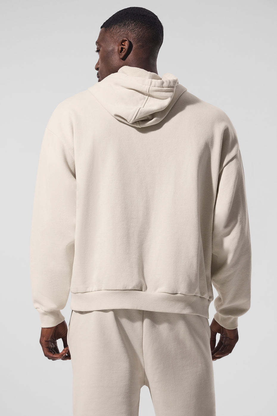 Designed for a boxy, oversized look—size down if you prefer a closer fitFrench terry that’s smooth on the outside and fleecy on the inside