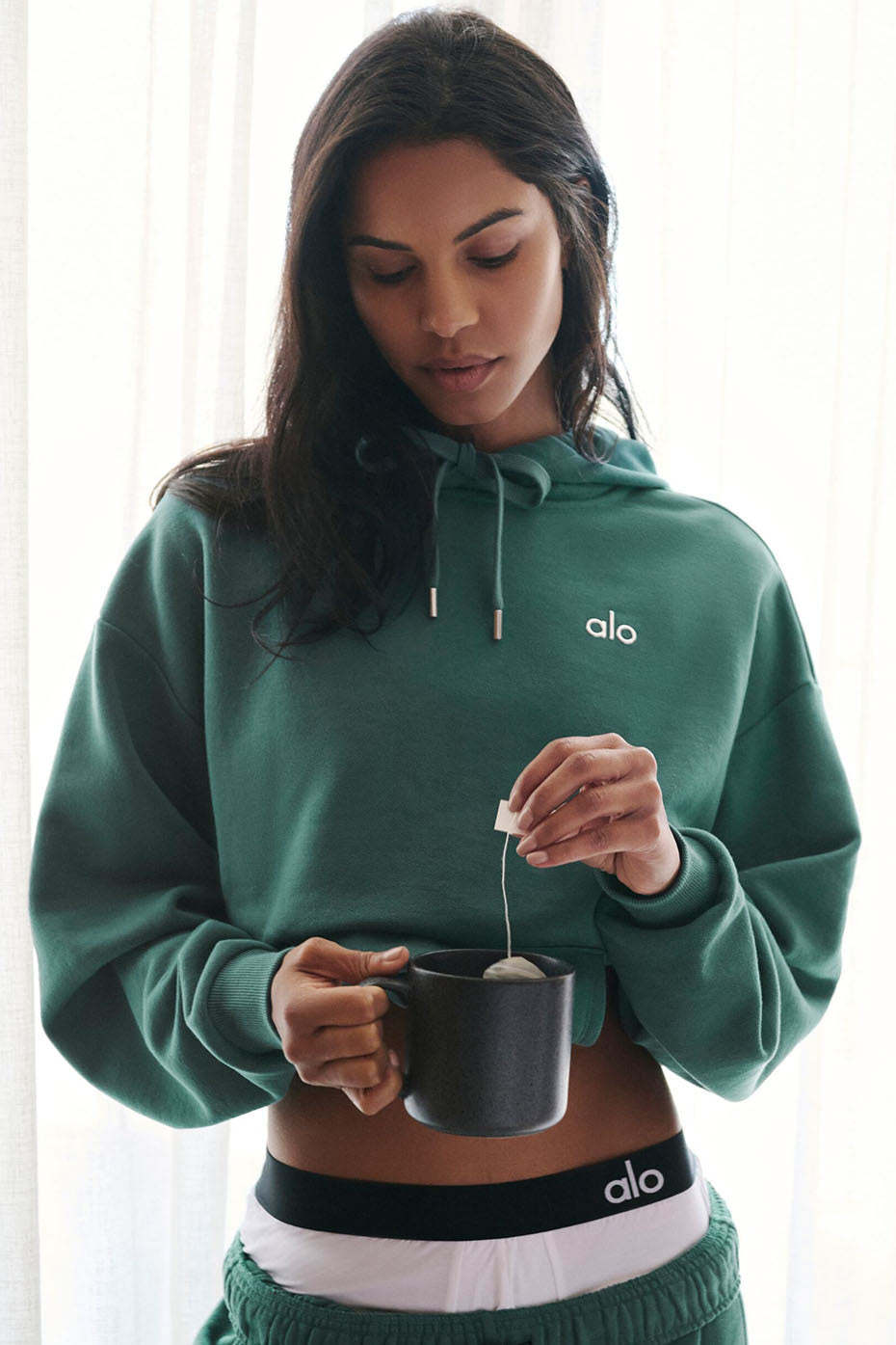 Designed for a boxy, oversized look—size down if you prefer a closer fitFrench terry that’s smooth on the outside and fleecy on the inside