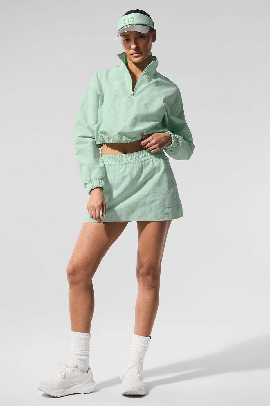 Upgrade your coverup collection with the Cropped ¼ Zip Alumni Pullover, cut from cool crinkle woven fabric that’s perfect for to-and-from yet easy enough to lounge in. Make it pop with leggings, biker shorts or a cute tennis skirt.