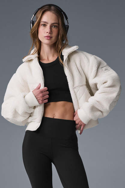 True to size—designed for a boxy, bomber-style fitZippered pocketsPlush sherpa