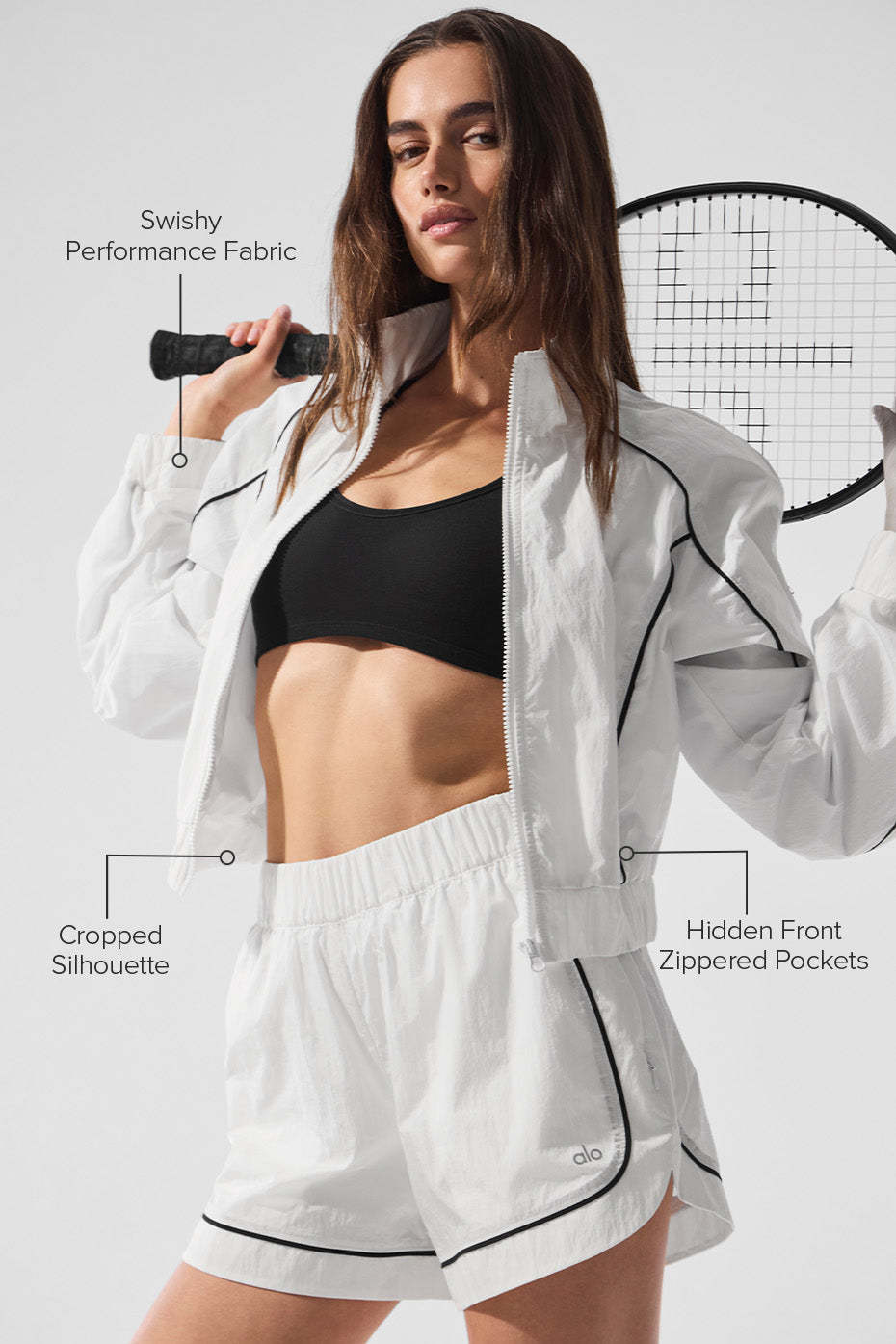 Sporty chic is back. The Motivate Full-Zip Track Jacket is a cropped silhouette with contrast piping and hidden front zippered pockets, making it the perfect performance-inspired piece for studio-to-street. Pair it with the Motivate Track Shorts for a super cool look you’ll never want to take off.