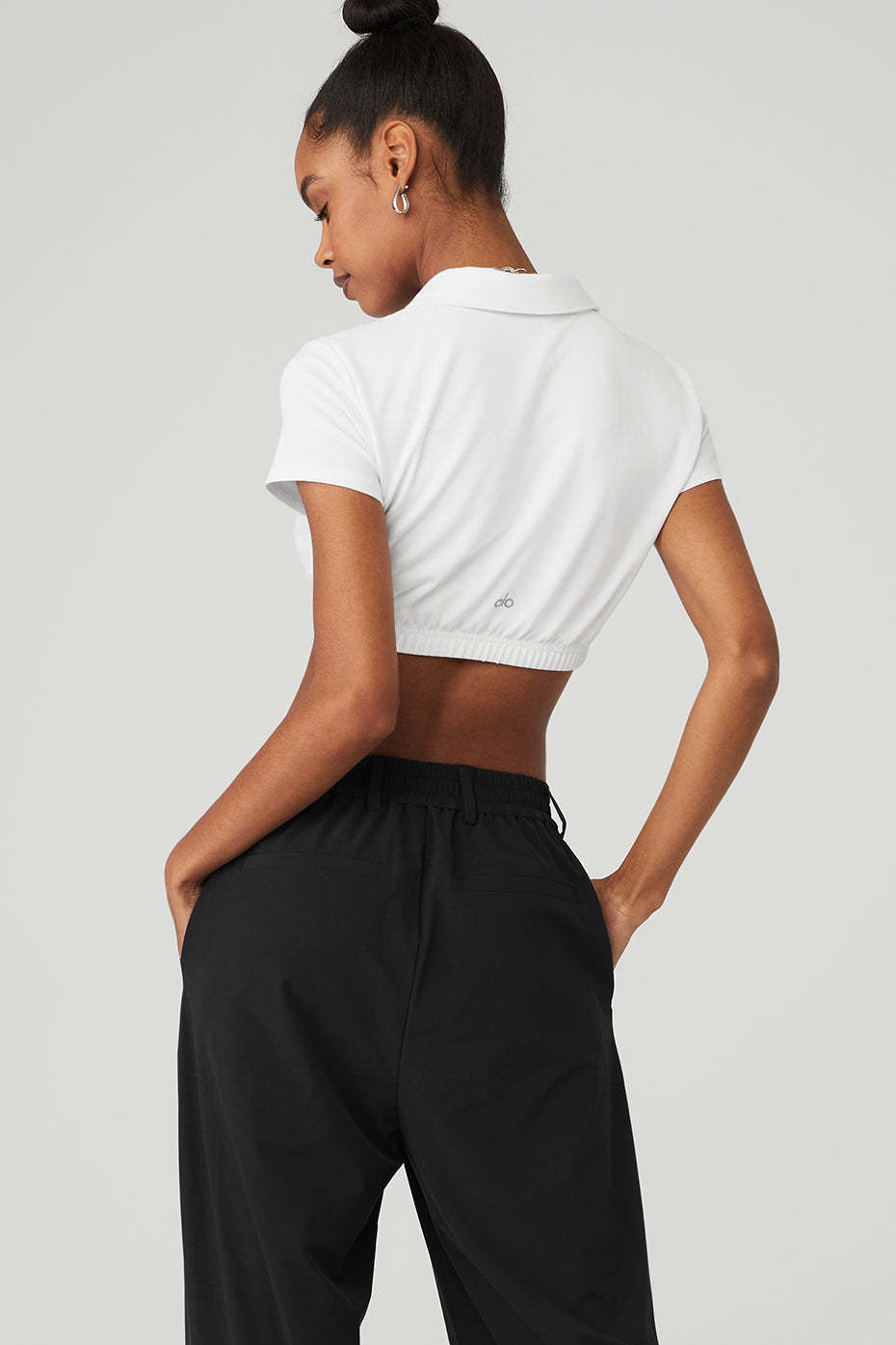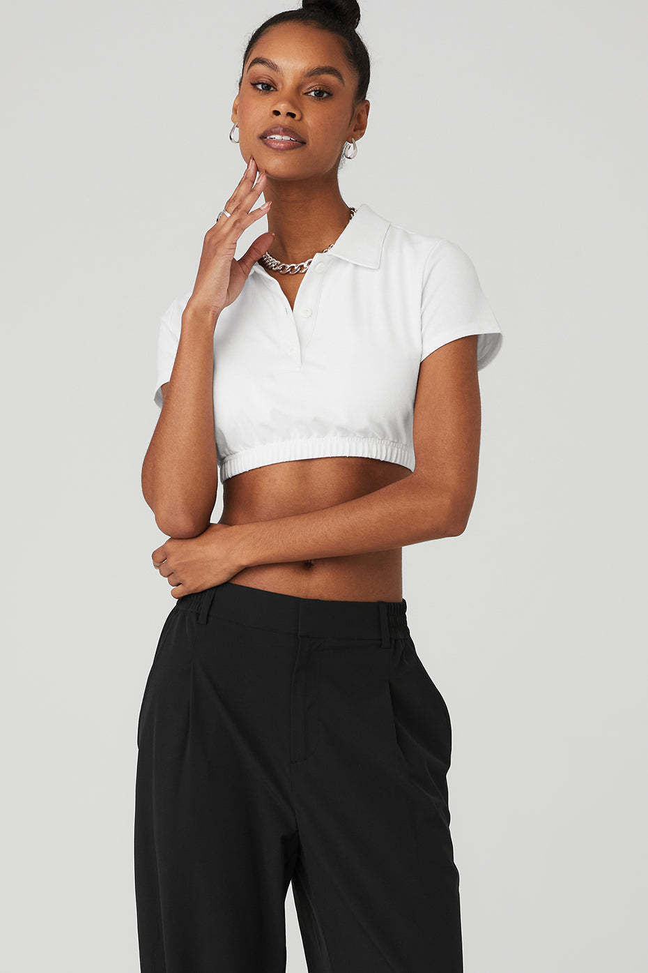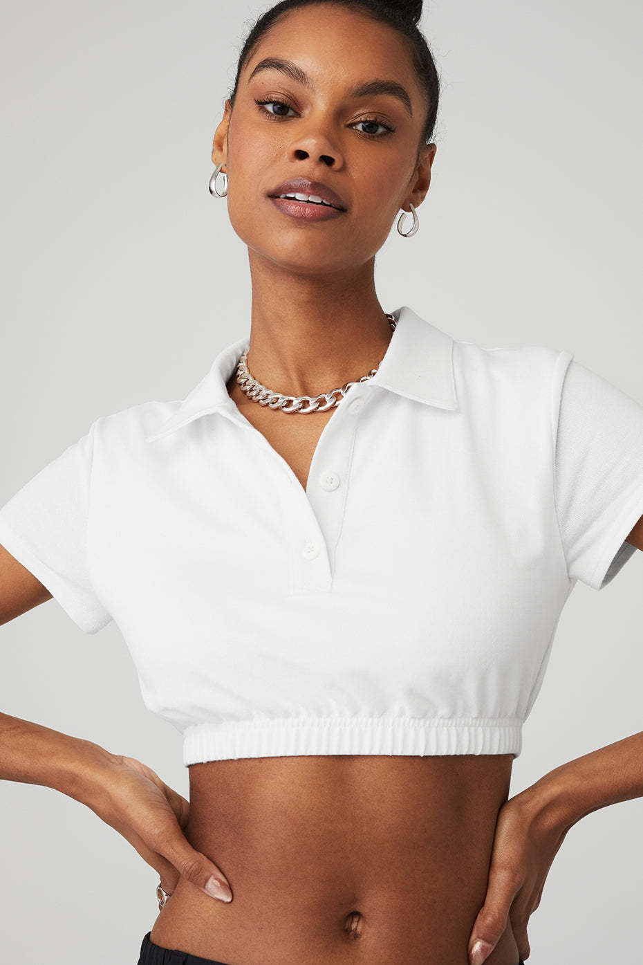 Give off the ultimate prep school chic vibes in the Cropped Prestige Polo. Its super-cropped, fitted silhouette will get you cool points at yoga class and with all your friends when you sport it for your next outing. Pair it with any high-waist bottom in your collection.