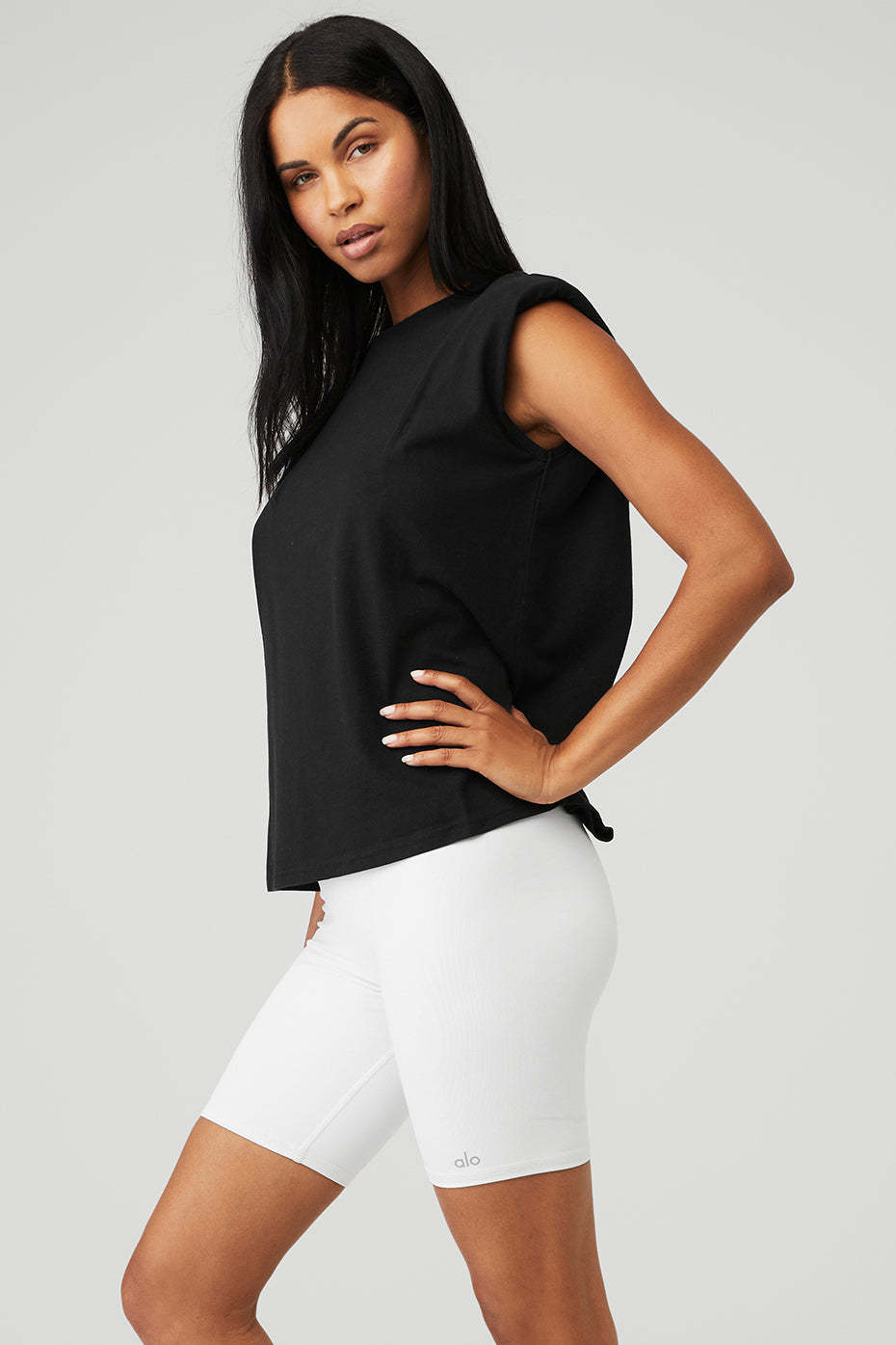 The next time you need power boost, reach for the Headliner Shoulder Pad Sleeveless Tee. Fitted and flawless with a crew neckline and 80s-inspired shoulder pads, this tank works for grinding it out in the studio and stepping out on the street.