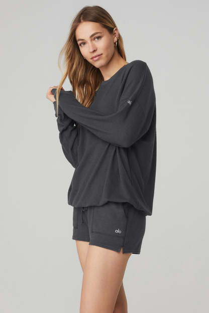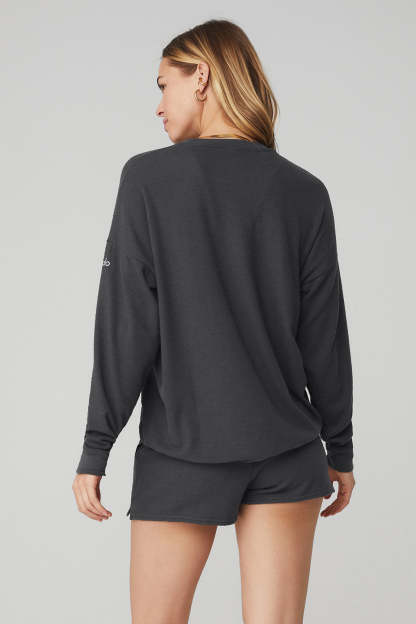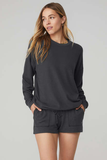A studio-to-street must-have, the Soho Pullover is seriously soft. This look is pre-washed to give it that lived-in cozy feel, and will continue to distress and pill with each wash and wear. Made from our signature athelolux fabric, it features a long body and long sleeves. Luxe, cashmere-like feel with moisture-wicking properties makes this the perfect warm-up for heading to practice.