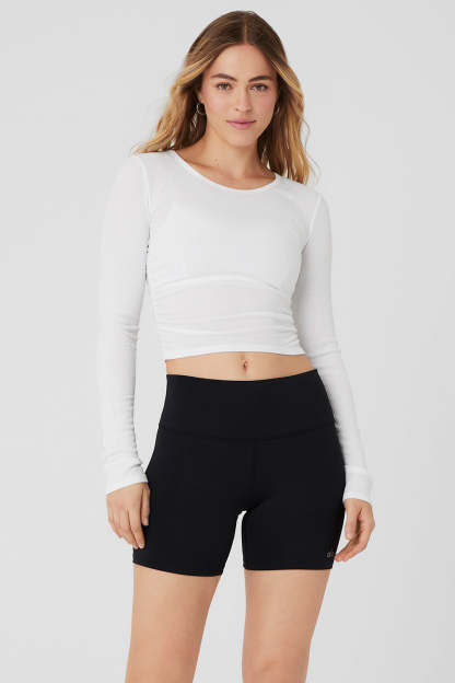 Put the ※warm½” in warm-up with the Gather Long Sleeve. It*s made with a soft ribbed knit and has a cropped, fitted silhouette and cute cinched sides. Pairs pretty with the High-Waist Goddess Legging.