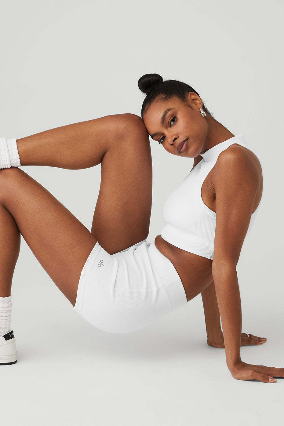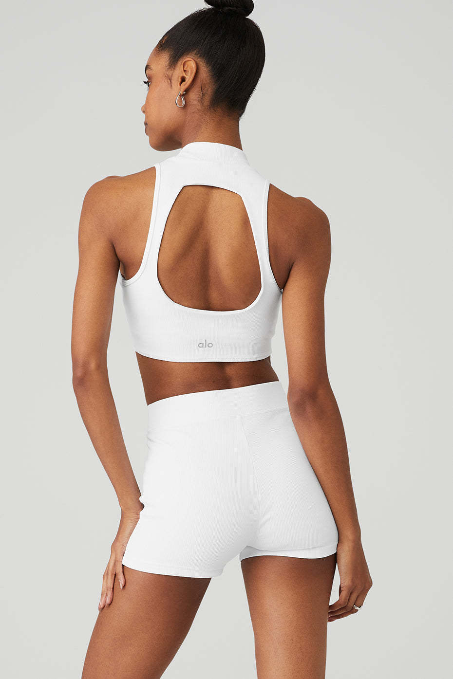 Bold and street-ready with a stunning high neck silhouette. The Goddess Rib Cropped Dynamite Bra Tank is made from ultra-soft and supportive ribbed Airbrush, so it*s got your back all day long 〞 even with an eye-catching open back design. Wear it with high waist bottom for a flawless look.